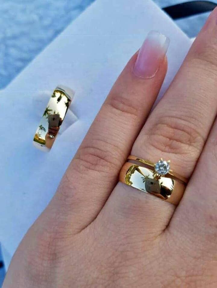 "Utilizamos estos anillos para nuestro compromiso y fueron una elección increíble. Son cómodos, brillantes y el toque de oro les da un estilo muy elegante."