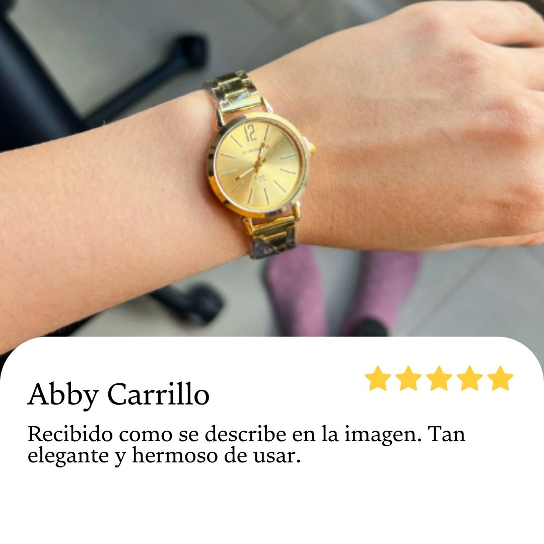 Carolina R. "Excelente calidad, el reloj tiene un acabado precioso y la pulsera es muy cómoda. ¡Lo recomiendo sin duda!"
